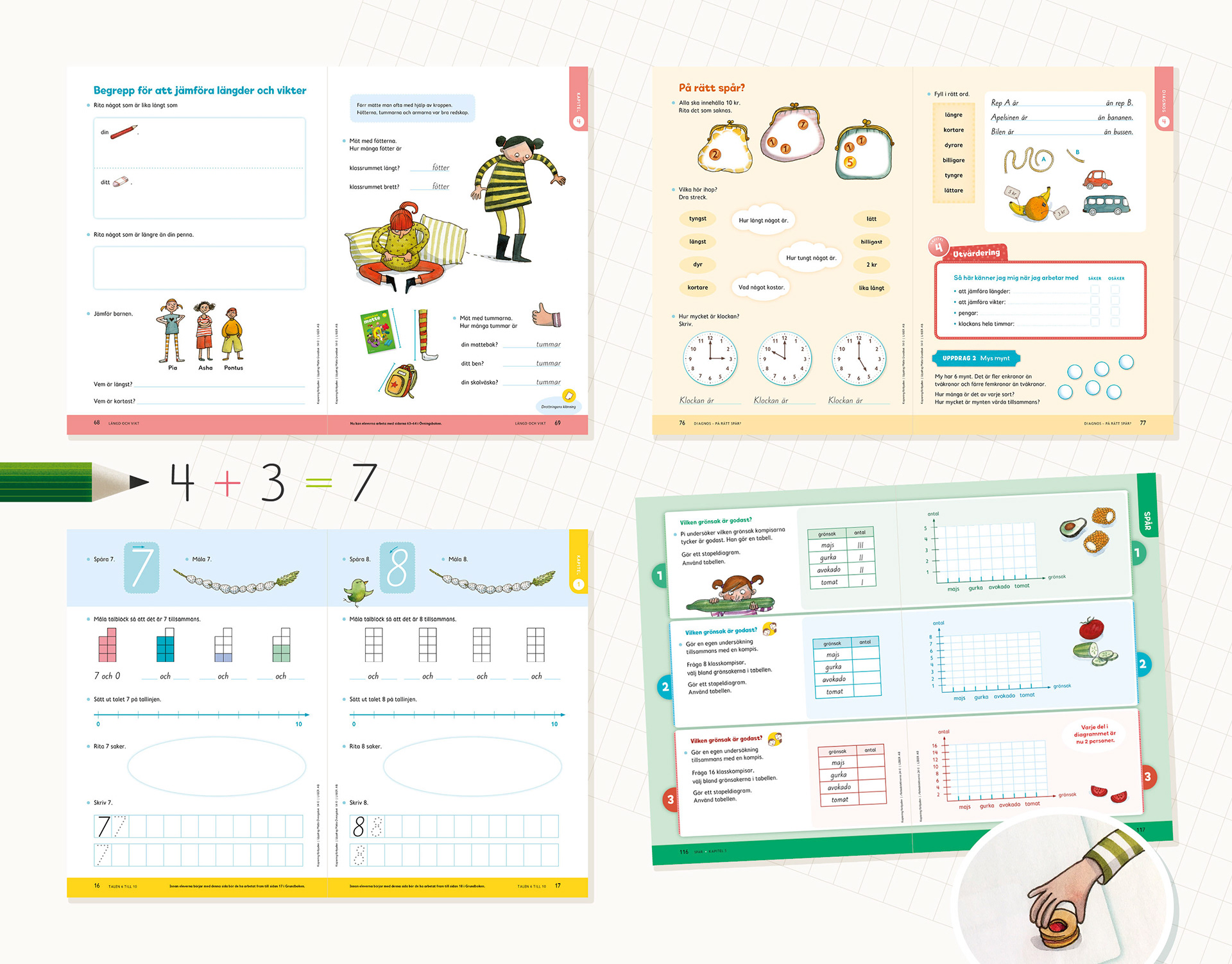 Kreativt, reflekterande och problemlösande – det är precis vad matte ska vara. Första böckerna formgav jag redan år 2011, då som Mattedetektiverna. Nu finns en ny färgrik upplaga med samma underbara illustrationer av Maria Nilsson Thore.